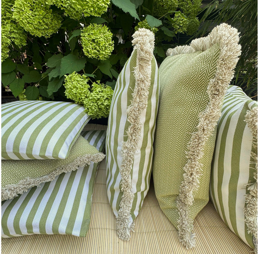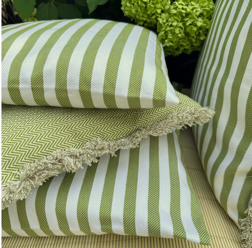 Was für wunderschöne Kissen ! Ein Traum für jede Terrasse oder Balkon. Ein frisches, fröhliches Streifendesign kombiniert mit ruhigem Grün und fröh...