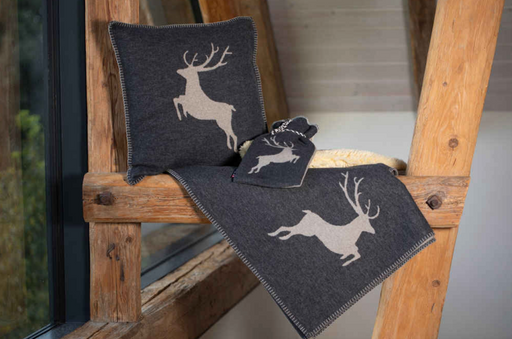 Kissen mit wunderschönen Decken in neuem Design mit dezentem Hirschmotiv, erhältlich in zwei dezenten Farbkombinationen. Kissenhülle Größe 50 x 50 ...