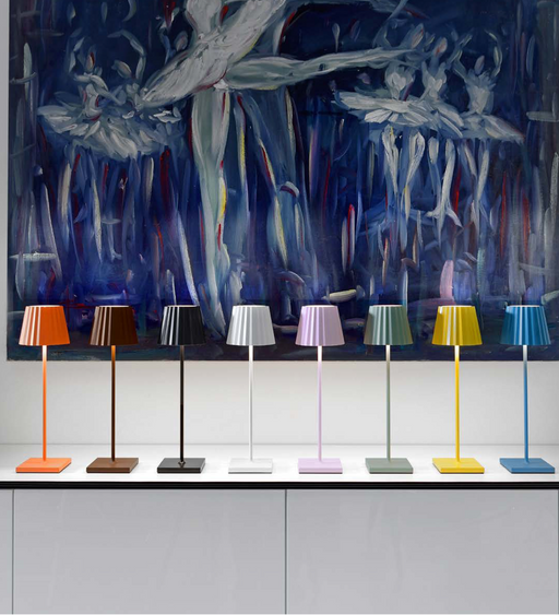TROLL 2.0 - die Outdoortischleuchte mit dem unverkennbaren Plissee-Schirm. Aus Aluminium gefertigt und in diversen Farben und Mustern beschichtet, ...