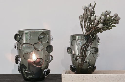 Ein absoluter Hingucker! Die neuen Vasen Cashmere ! Dezent aus Rauchglas gearbeitet, aber auffallend im Design! Jede Vase ein Unikat, Handarbeit. B...
