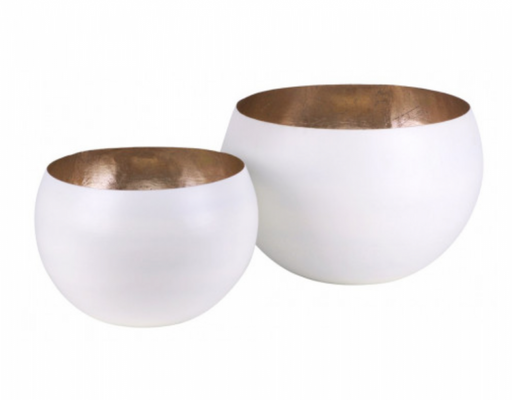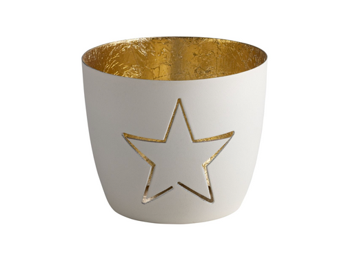 Wunderschönes Windlchtset Madras aus Metall, aussen in weiss matt lackiert und innen mit einer zarten Goldschicht überzogen. Zaubert ein wunderschö...