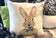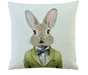 Kissenbezug mit einem Hasen im Sakko mit Fliege auf einem Baumwoll-Mischgewebe für Frühling und Ostern